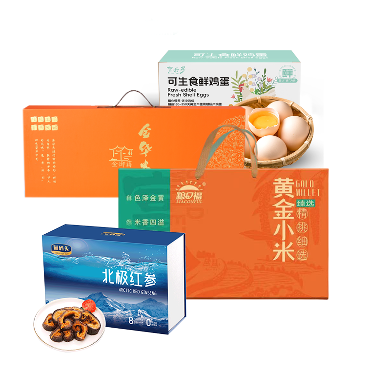 家宴自选册898型悦尚C------金御蒋金华火腿3斤切片礼盒(纸盒)+粮口福黄金小米2300g礼盒+育禾乡可生食鸡蛋10枚礼盒 +喵码头北极红参250g礼盒