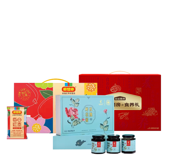 旺喜运来之前套餐已下架新套餐为:五谷磨房食养礼-食养暖暖礼盒1092g 花养花玫瑰酱礼盒218克*3瓶 好想你枣每日红枣900g
