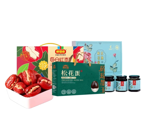 稻香村八选一送货券418型---套餐B 之前套餐已下架新套餐为:好想你红枣夹核桃礼盒900g+粮口福松花蛋60g*16枚+花养花鲜花酱218*3