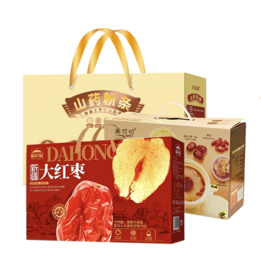 家宴食品卡悦美398型套餐F------粮口福新疆大红枣1000g礼盒+燕叨叨鲜炖整梨1512g礼盒+醉美沂蒙山药粉条1kg礼盒