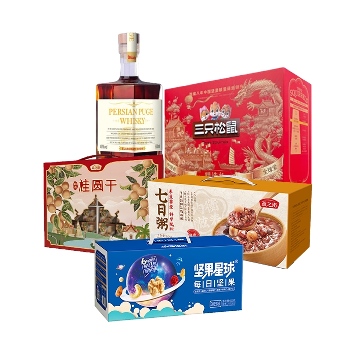 家宴食品卡悦润698型套餐H------燕之坊新版精选泰国清迈桂圆干礼盒+波斯普歌威士忌500ml单瓶+三只松鼠精选礼1510g礼盒+沃隆坚果星球礼盒600g+燕之坊七日粥礼盒1.05kg礼盒