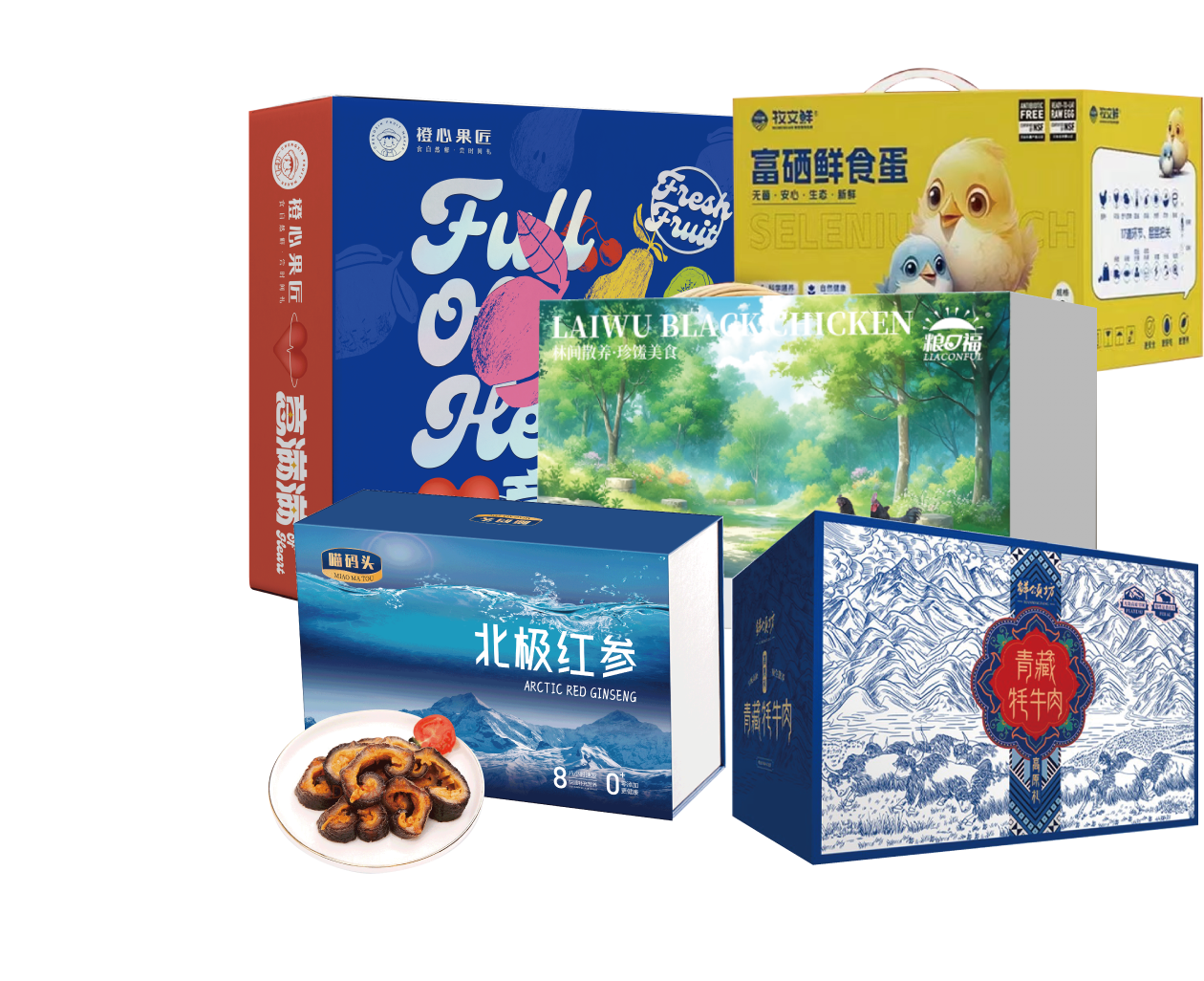 合家1698型套餐D-------莱芜黑鸡母鸡单只礼盒 规格:母鸡:2.5-3斤(18个月以上) +富硒鸡蛋富硒Se营养蛋30枚礼盒 +26年鲜颂坊牦牛肉2050g礼盒 +DIY美果水果礼盒+ 喵码头北极红参250g礼盒
