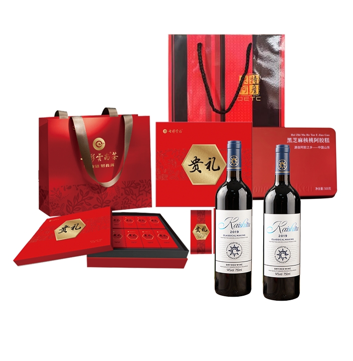 家宴食品卡悦润698型套餐J------- 七彩云南贵礼160g袋礼盒+26年鲜吉仙黑芝麻核桃阿胶糕礼盒+凯士图*罗斯菲尔德750ml*2双支