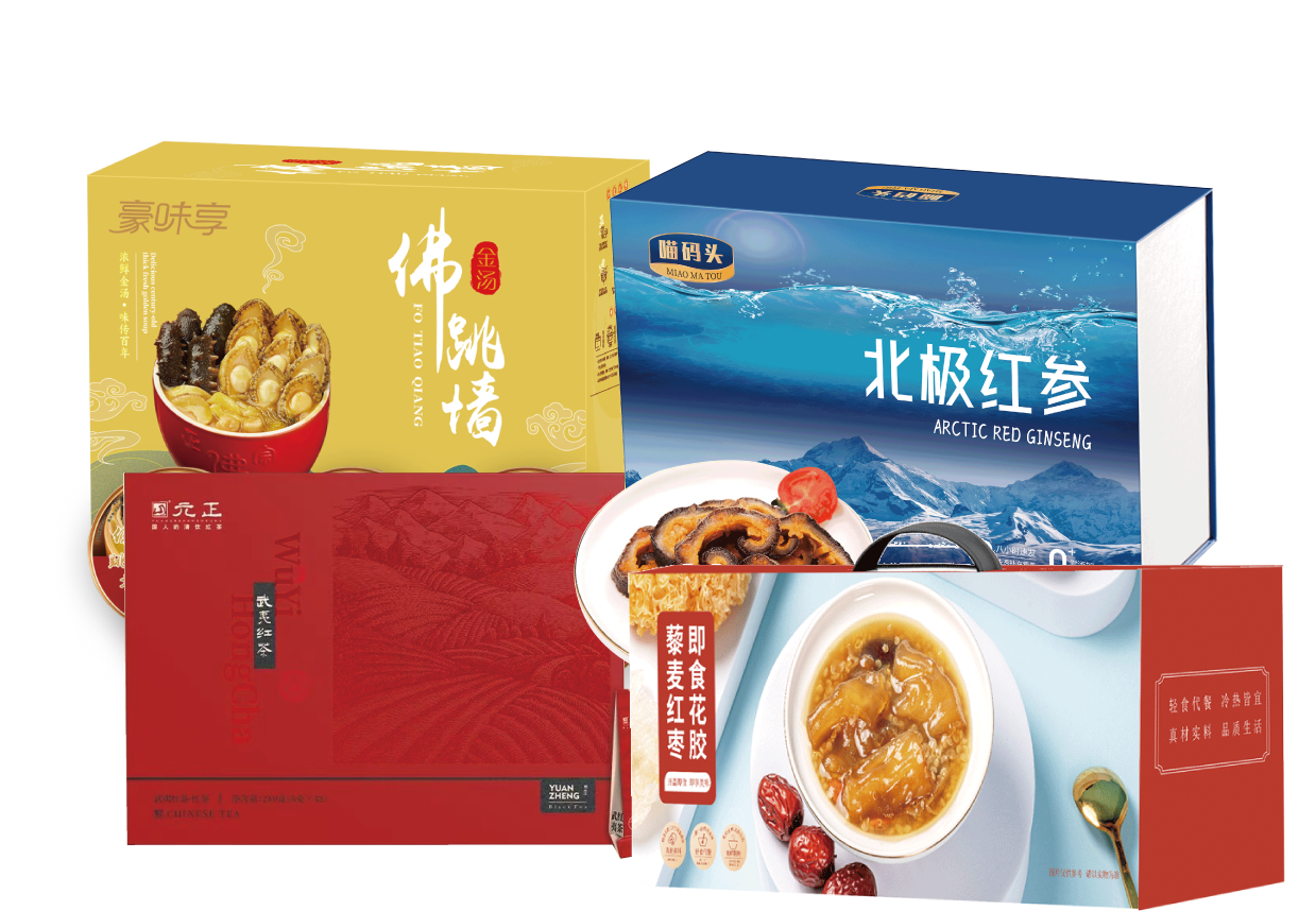 合家1698型套餐H------藜麦即食花胶礼盒C款+ 豪味享金汤喜宴1440g礼盒+ 喵码头北极红参750g礼盒+ 元正武夷红茶210g礼盒