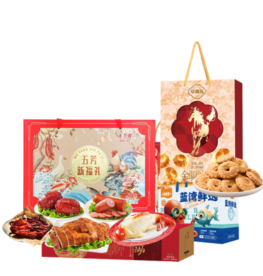 合家1698型套餐I-------华美600G 金驹颂福礼盒+五芳斋五芳新福礼1.83kg+26年海鲜港富贵盈门4700g礼盒 + 查干湖经典胖头鱼礼盒 规格:5.1-5.9斤