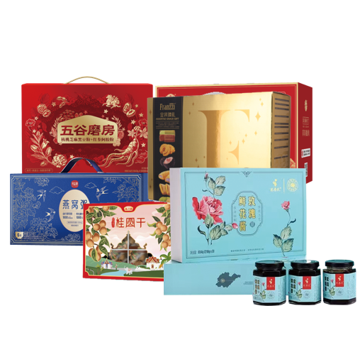 臻萃518型套餐A-------原产品已停产更换成五谷磨房食养礼-食养暖暖礼盒1092g+原产品已停产更换成鲜品屋-1020g恭喜发财礼盒+好想你枣每日红枣900g礼盒