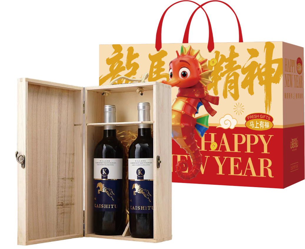 如意398型套餐G------26年海鲜港-龙马精神+ 凯士图威朗干红葡萄酒双支木盒礼盒