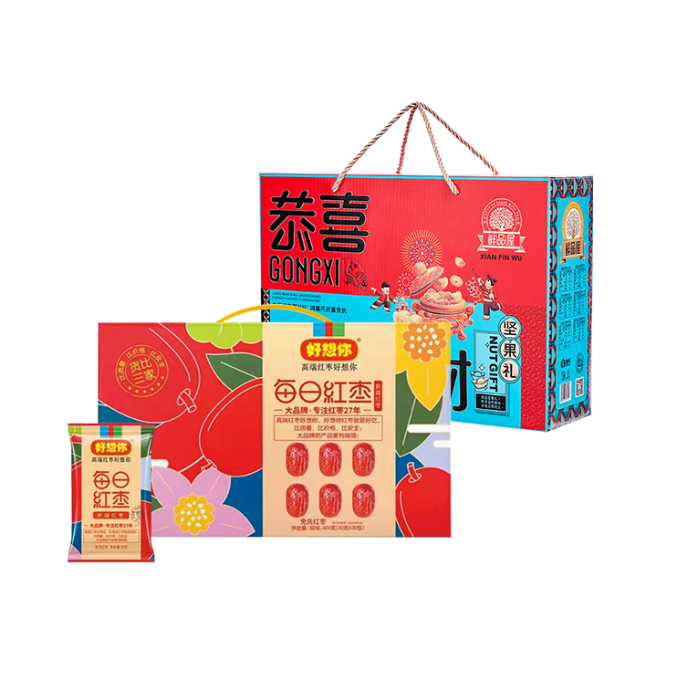 三只松鼠坚果三选一138型-----好想你枣每日红枣900g+鲜品屋-1.02kg恭喜发财礼盒