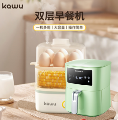 如意398型套餐Q-------亚摩斯空气炸锅电脑版AS-AF360+ 卡屋双层早餐机LG-103(蓓)