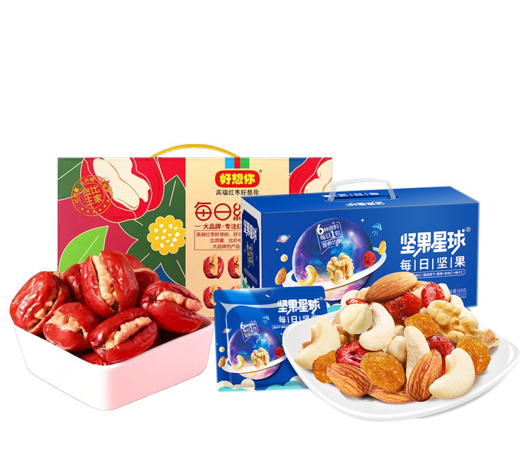 三只松鼠坚果礼D款------产品已下架产品为:沃隆坚果星球600g+好想你红枣夹核桃礼盒900g