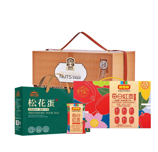 三只松鼠坚果三选一378型-----套餐更新为:臻味-2300g环球荟萃礼盒+ 好想你枣每日红枣900g +粮口福松花蛋960g