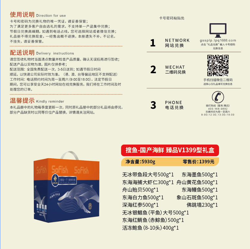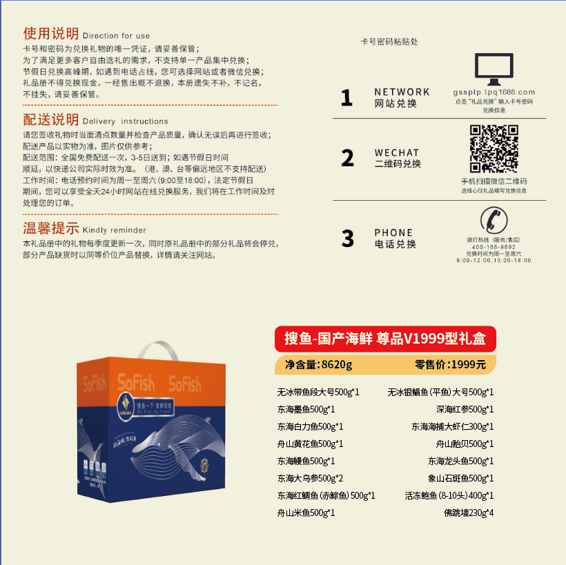 国产海鲜 尊品V1999型礼盒--净含量:8620g