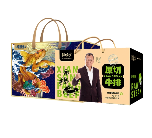 盒马优选汇 套餐B------25年鲜颂坊原切牛排810g礼盒+25年海鲜港蒸蒸日上3400g礼盒