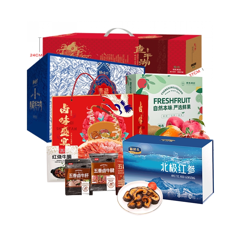 家宴食品卡1698型悦逸套餐I------26年鲜颂坊牦牛肉2050g礼盒+查干湖经典胖头鱼5.1-5.9斤礼盒+南粤果然有爱礼盒+恒都熟食礼盒A款1300g礼盒+喵码头北极红参250g礼盒