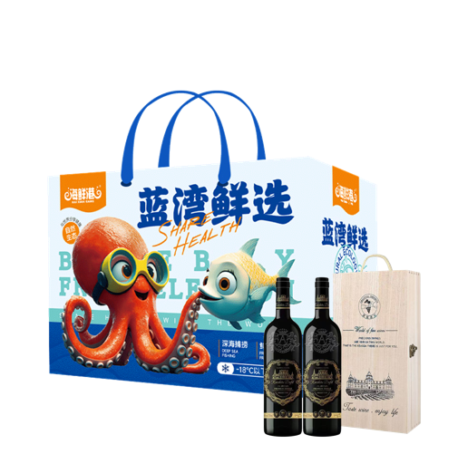 家宴食品卡悦翔518套餐E-------26年海鲜港2700g-阖家幸福礼盒 + 戴菲勒木盒双支礼盒