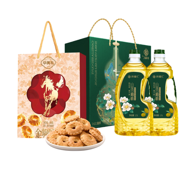 吉祥298型套餐J-----纳福汇山茶橄榄油1500ml*2礼盒+华美600G金驹颂福礼盒