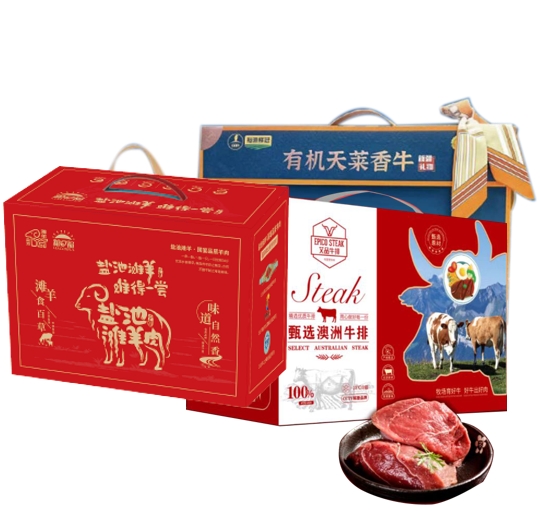 优鲜汇套餐B-----生鲜大叔草原牧场2000g礼盒+滩羊盐池498型四季发财2000g礼盒+新疆有机香牛2000g礼盒