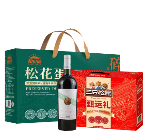 家宴食品卡悦享298型套餐B------粮口福粮口福松花蛋960g礼盒+ 三只松鼠甄运礼1096g礼盒+凯士图珍藏干红葡萄酒750ml单瓶