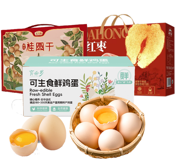 家宴食品卡悦享298型套餐F------燕之坊新版精选泰国清迈桂圆干礼盒538g+育禾乡可生食鸡蛋10枚装礼盒+粮口福新疆大红枣1000g礼盒