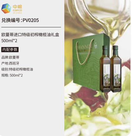 中粮五十选一礼品册200型--5(欧蔓蒂进口特级初榨橄榄油礼盒 500ml*2)