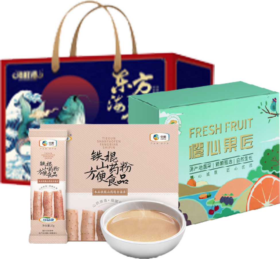 中粮二十一选一898型定制款-套餐I---------25年海鲜港蒸蒸日上3400g礼盒 +果然有爱水果礼盒 整箱:4种/约重1.4kg + 可益康铁棍山药粉280克/盒