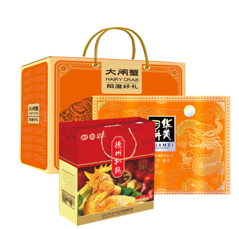 中粮二十一选一898型定制款-套餐J-------- 蟹家铺子大闸蟹三对装礼盒 规格: 公蟹3.2两3只 母蟹2.2两3只 +华美感恩福礼900g月饼礼盒 + 德州扒鸡1000g礼盒