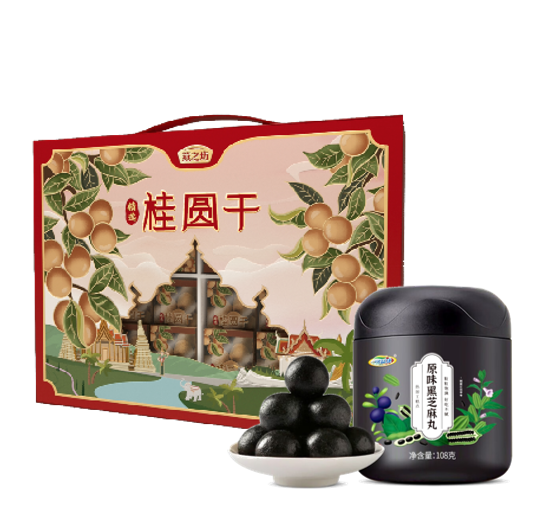 家宴自选册食品卡198型悦活套餐G ------燕之坊泰国清迈桂圆干538g礼盒+可益康黑芝麻丸108g