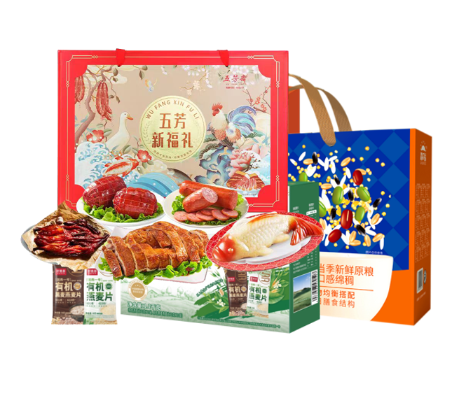 家宴食品卡悦达598型套餐D------套餐更新为:好麦多高原 有机燕麦礼1200g+五芳斋五芳新福礼1.83kg+粮口福每日膳食粥(心意满满)1.35kg礼盒