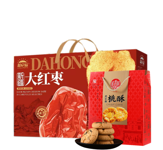 家宴自选册食品卡198型悦活套餐I--------粮口福新疆大红枣1kg礼盒+稻香村黑芝麻桃酥800g礼盒