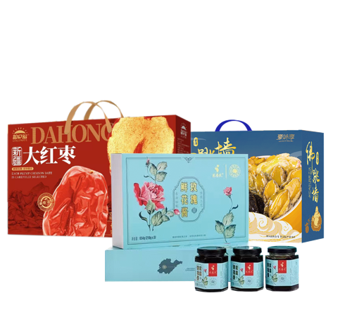 家宴食品卡悦达598型套餐F-------豪味享金汤家宴1000g礼盒+粮口福新疆大红枣1000g礼盒+花养花玫瑰酱654g礼盒