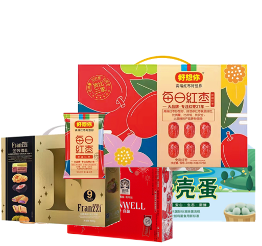 家宴食品卡悦达598型套餐G-------法丽兹880g金装臻选F箱式礼盒(NEW)+臻味金牌·1000g喜盈礼盒+绿壳蛋30枚礼盒+好想你枣每日红枣900g