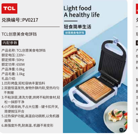 中粮五十选一礼品册200型--TCL创意美食电饼铛