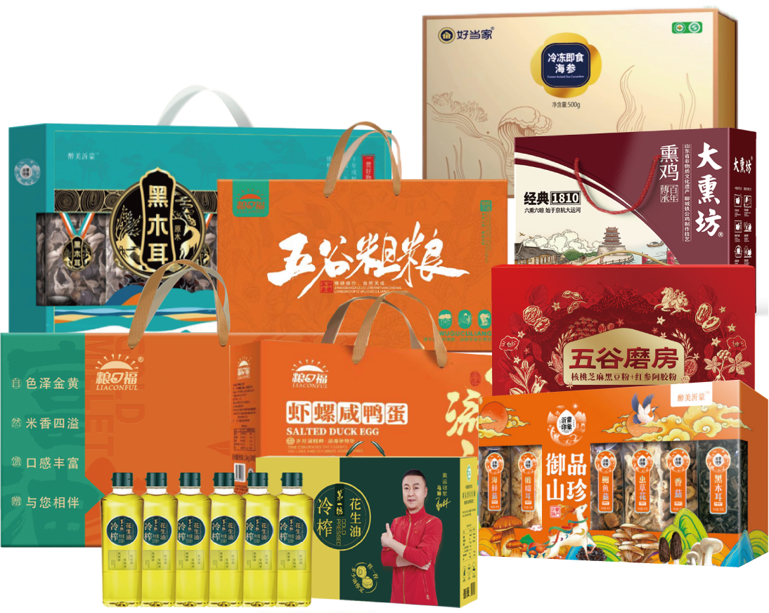 悦美3198型套餐C-------好当家海参500g(即食海参)礼盒+ 第一坊冷榨花生油500ml×6礼盒 +五谷磨房食养礼-黑粉+红参礼盒856g+ 醉美沂蒙黑木耳1.02kg礼盒+ 醉美沂蒙御品山珍1.136kg礼盒 +粮口福虾螺咸鸭蛋1.2kg礼盒 +大熏坊熏鸡800g礼盒 +粮口福五谷粗粮杂粮2080g礼盒 +粮口福黄金小米2.3kg礼盒