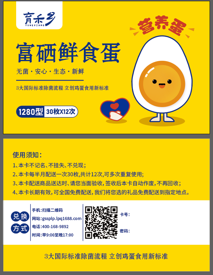富硒鸡蛋半年卡1280型(鸡蛋卡)