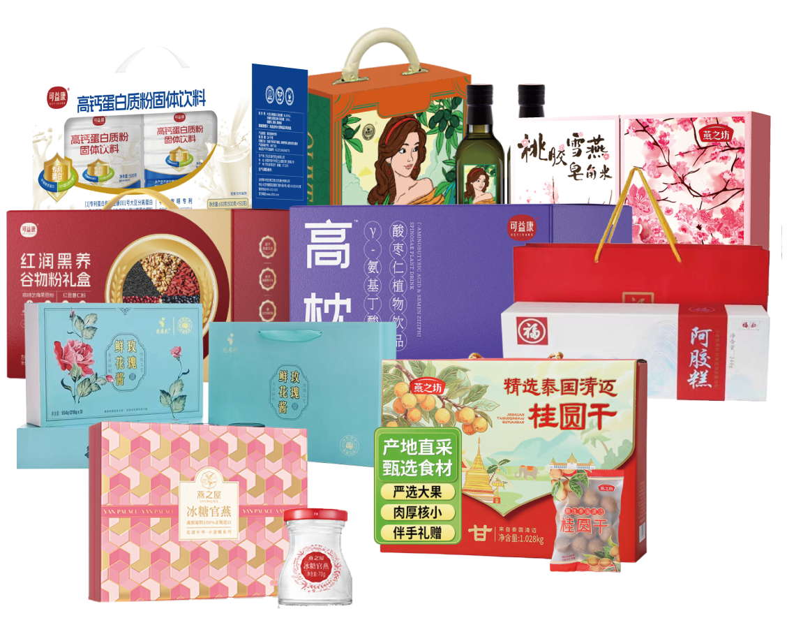 悦美3198型套餐E------燕之屋即食瓶装燕窝70g*8瓶礼盒+燕之坊精选泰国清迈桂圆干1.028kg礼盒+可益康红润黑养代餐粉礼盒+可益康高枕γ氨基丁酸酸枣仁植物饮品210ml礼盒+可益康高钙蛋白粉礼盒650g+福牌阿胶糕240g礼盒+花养花玫瑰酱654g礼盒+恩纳尔雅致经典橄榄油500ml*2礼盒+燕之坊桃胶雪燕皂角米520g礼盒