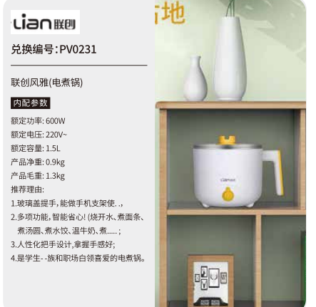 中粮五十选一礼品册200型--联创风雅(电煮锅)