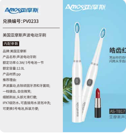 中粮五十选一礼品册200型--美国亚摩斯声波电动牙刷