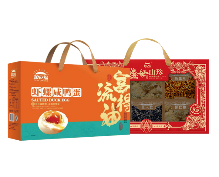 坚果三选一礼品卡278型--------套餐更新为:盛世山珍礼盒1205g+粮口福虾螺咸鸭蛋礼盒60g*20枚