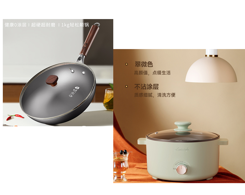 二十选一自选册好运1198型套餐U-------九阳有钛0涂层铁锅+小画仙多功能电火锅5L翠微色LDZG-5066