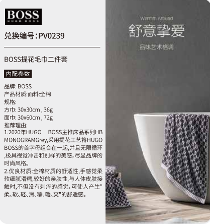 中粮五十选一礼品册200型--BOSS提花毛巾二件套