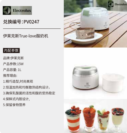 中粮五十选一礼品册200型--伊莱克斯True-love酸奶机