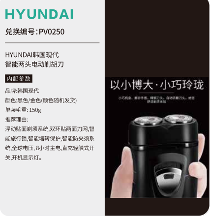 中粮五十选一礼品册200型--HYUNDAI韩国现代 智能两头电动剃胡刀