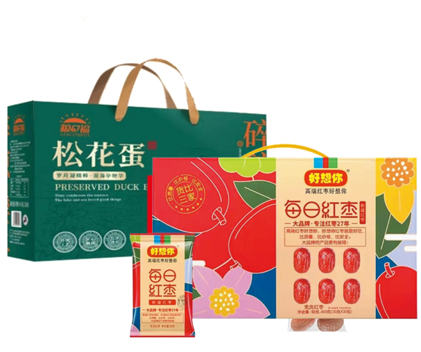 稻香村上品尊礼月饼套餐更新为:好想你枣每日红枣900g+ 粮口福松花蛋960g